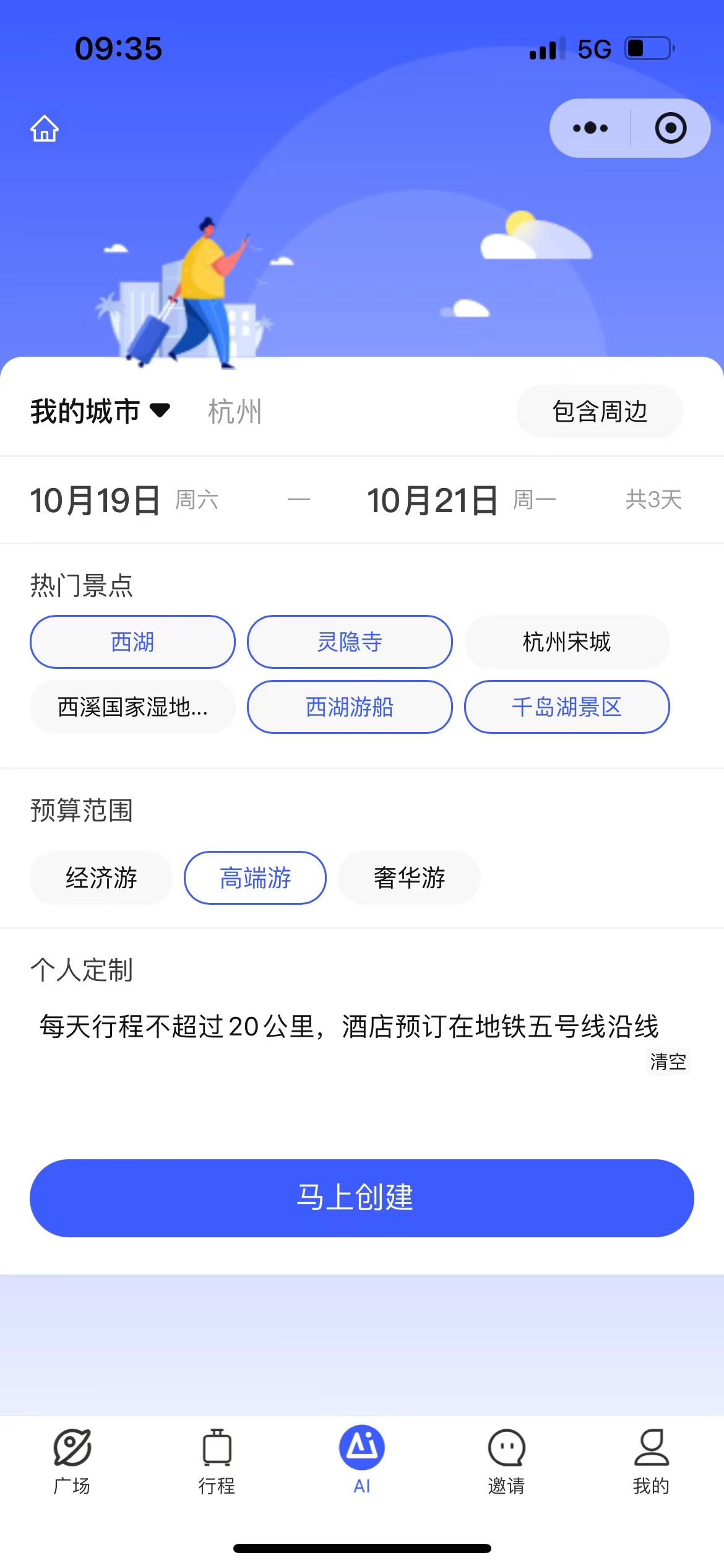 稻田旅行让AI成为您的智能旅行助手,只需要输入旅行目的地,稻田旅行将为你自动规划景点、酒店、餐饮,结合智能AI能力,帮你合理规划行程。