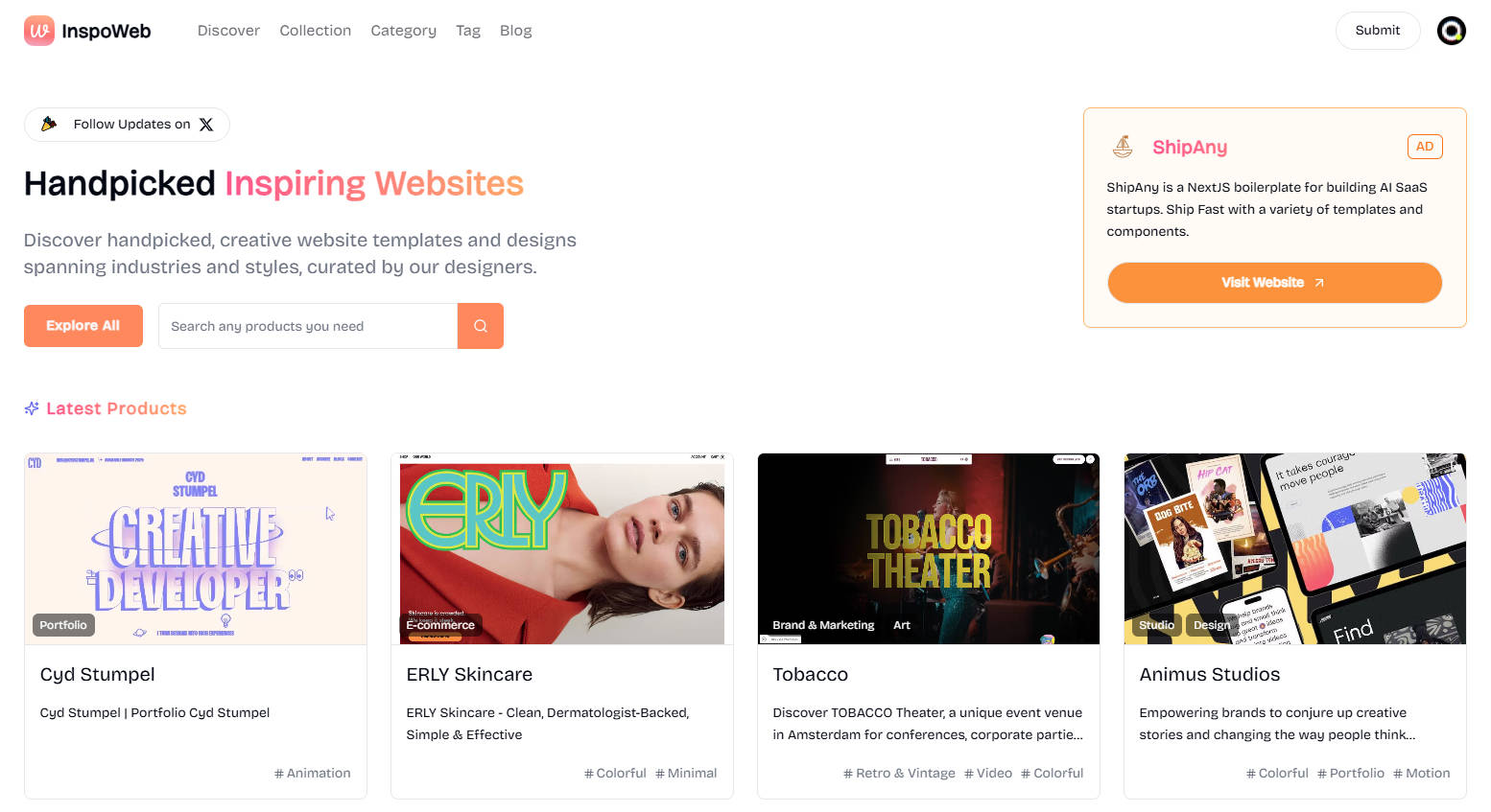 InspoWeb - 创意网页灵感库 由 Ricocc2025-03-11 11:29InspoWeb 是一个由设计师主导的创意网页和设计灵感收录平台,由设计师手动甄选和录入多种风格的创意网站项目,适合设计师、开发者和创意工作者寻找网站参考和设计灵感。
