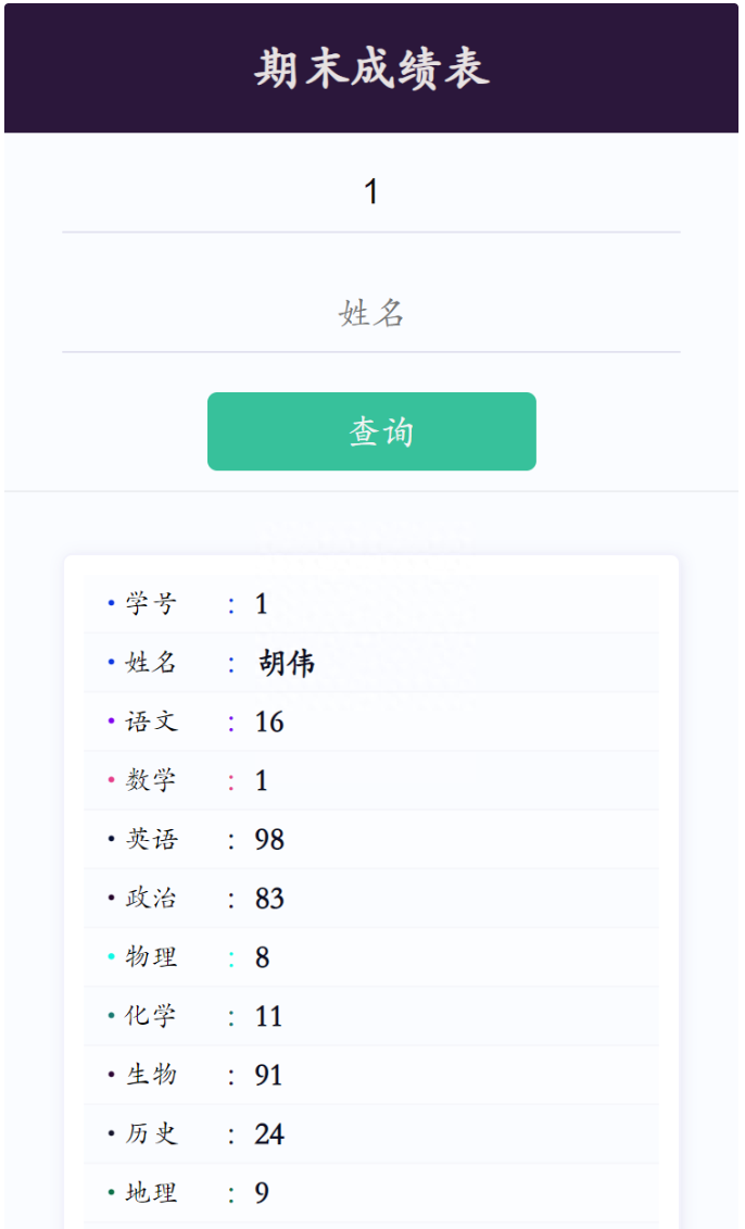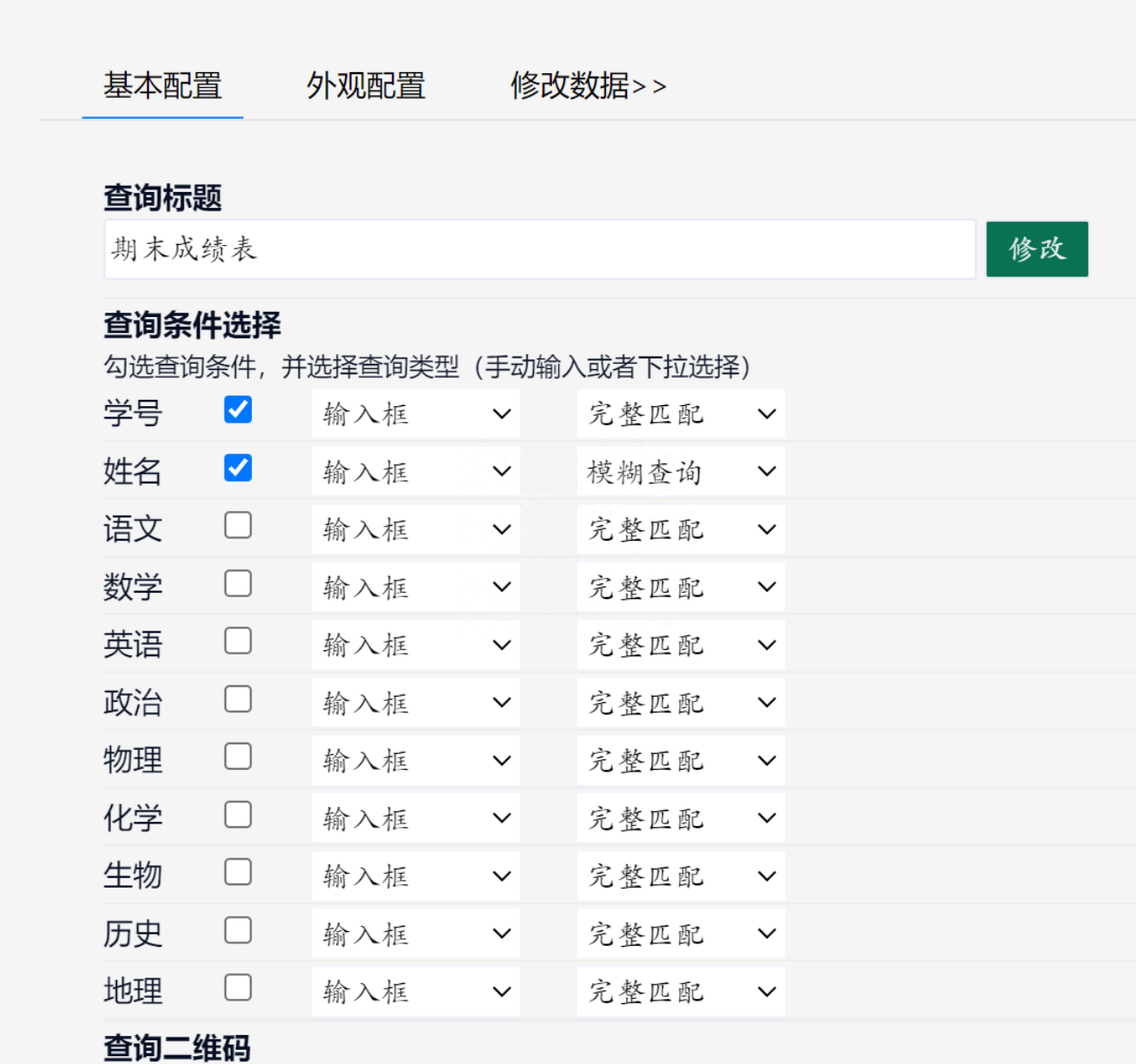 勾选需要查询的字段(这里允许通过学号或者姓名查询)
