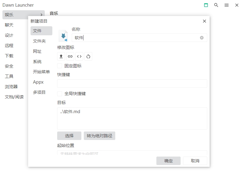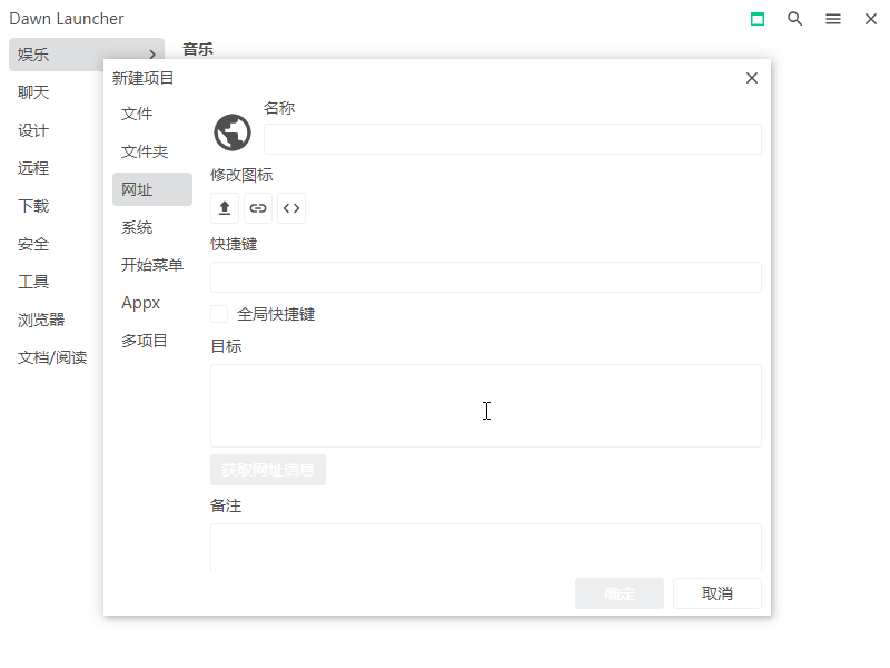 支持关联文件夹(实时同步文件夹内容)、快速搜索、相对路径(便携路径)、扫描本机开始菜单、本地扫描本机Appx应用列表、添加网址并一键获取网址信息。