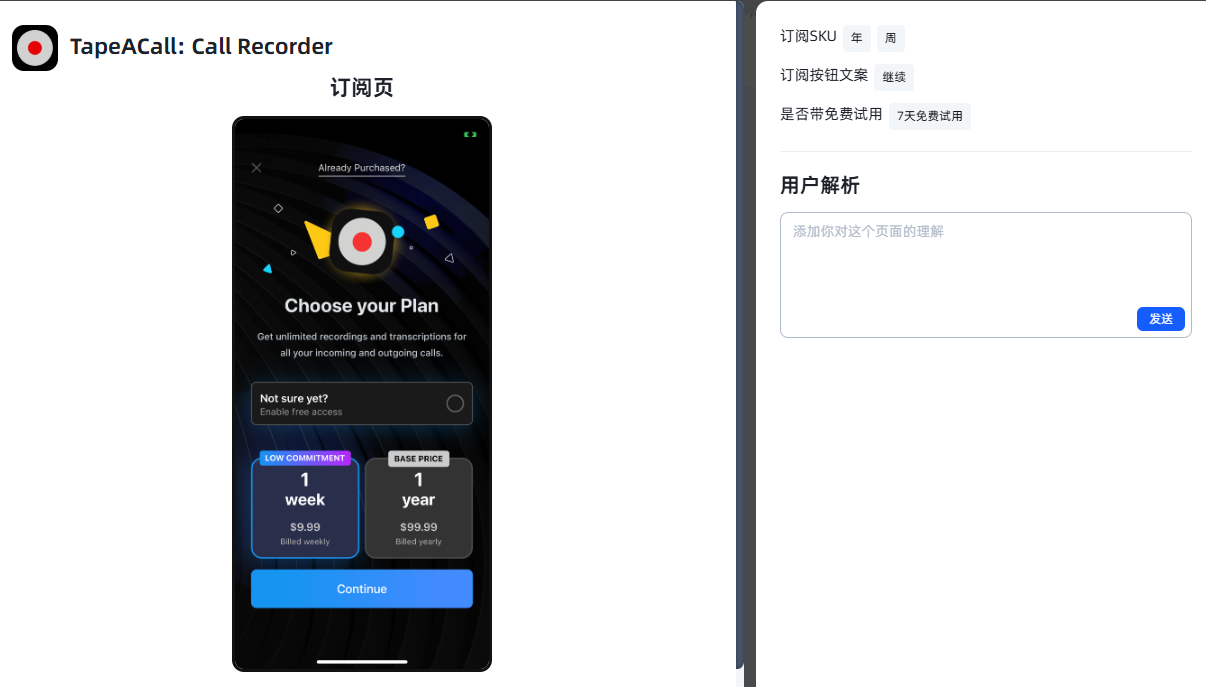 - 通过订阅宝,开发者可以查看竞品的订阅页面布局、文案和视觉设计。