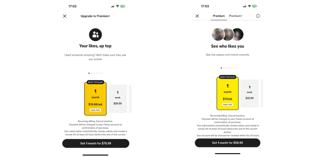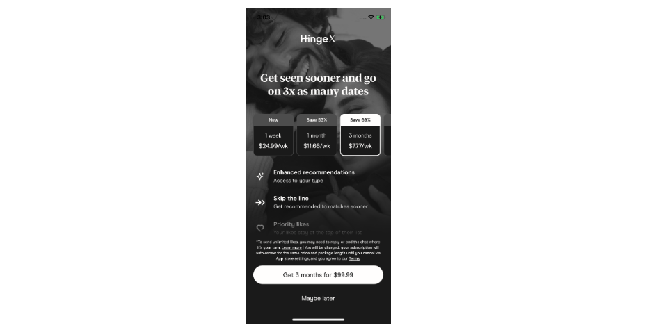 Bumble和Hinge是流行的交友应用,主要通过订阅服务和应用内购买来盈利。用户可以免费使用应用的基本功能,但通过付费订阅可以获得更多的特权和功能。2023年,这两款应用通过增强用户体验和推出新功能,继续在竞争激烈的交友市场中保持优势。