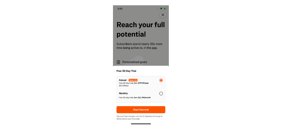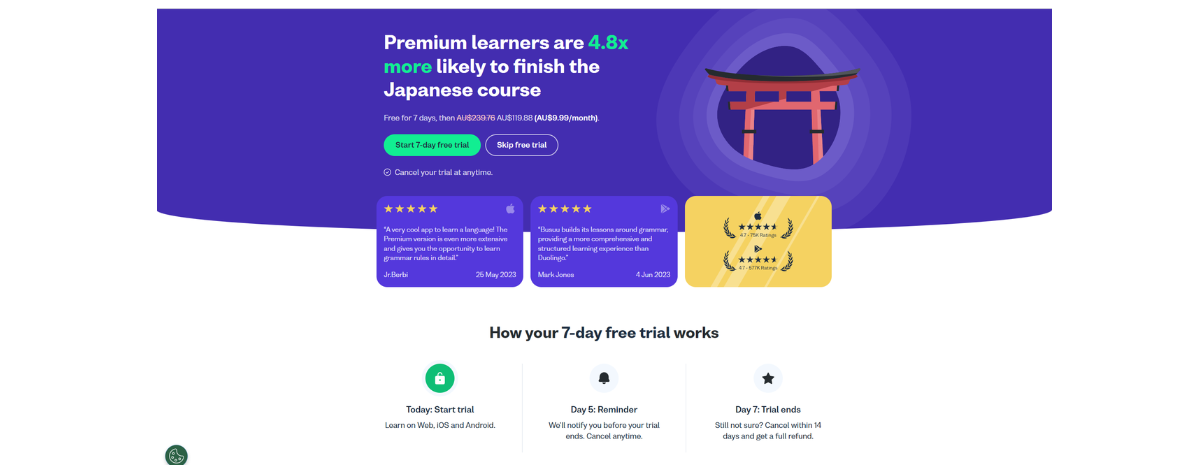Busuu是一款语言学习应用,采用了“Freemium”模式,提供免费和高级订阅服务。免费用户可以访问基础课程,而高级用户可以解锁更多的学习资源和个性化服务。2023年,Busuu继续扩展其语言学习课程,并通过促销活动吸引更多用户订阅其高级服务。