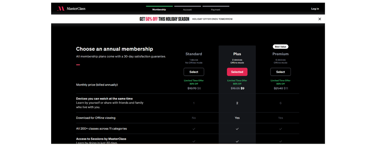 Masterclass提供了名人授课的视频课程,采用了订阅付费的模式。用户可以按年订阅,访问所有课程内容。2023年,Masterclass通过扩展其课程库和增加名师阵容,吸引了更多订阅用户,进一步提升了其收入。