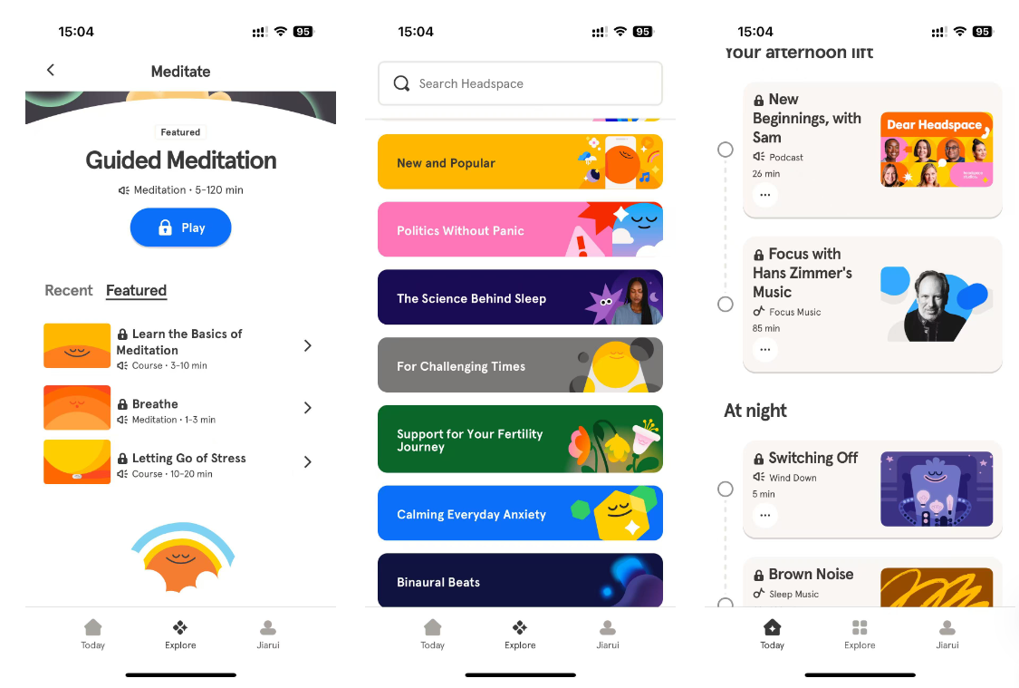 - 个性化课程推荐:基于上述数据,Headspace 的 AI 系统能够提供量身定制的冥想课程。比如,如果某个用户频繁选择焦虑相关的冥想课程,系统就会优先推荐该类课程,并提供与用户的情绪状态匹配的冥想训练。这种个性化推荐不仅能提高用户满意度,还能增加他们的使用频率和留存率。