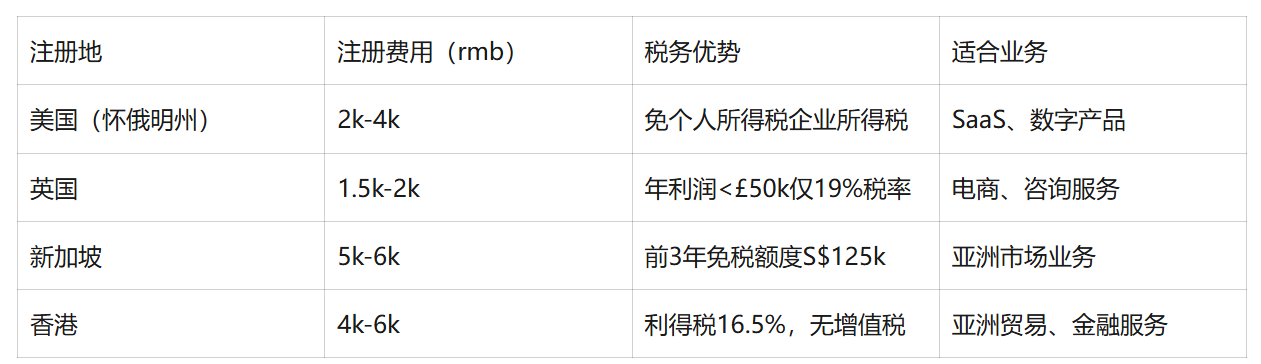 大多数独立开发者,出海的主要客户是英语国家,比如美国、英国、澳大利亚。所以注册地的话,可以根据自己的实际需求选择,下面是我汇总整理的国家和适合业务做参考。