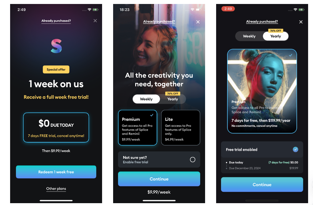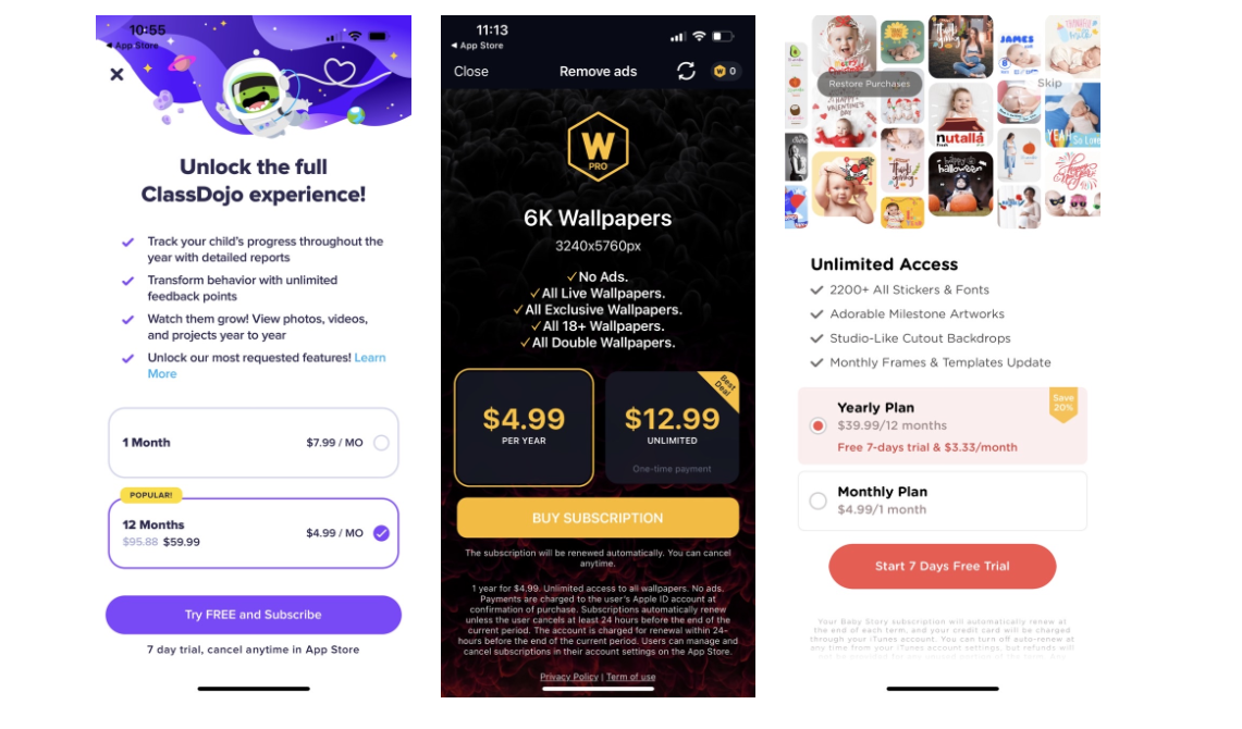 - 季订阅:适中的承诺和价格,为需要时间评估App的用户提供理想的选择。