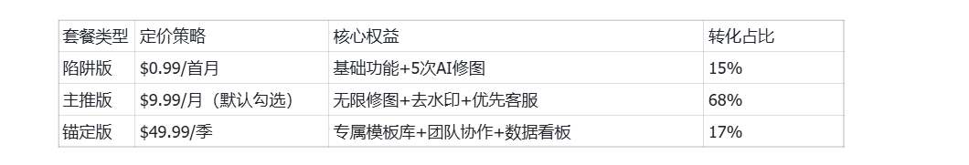 - 在$9.99/月套餐旁标注"日均成本=1杯咖啡的1/10"(转化率+22%)