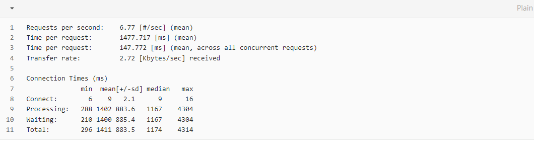 ab -n 100 -c 10 100并发 访问10次