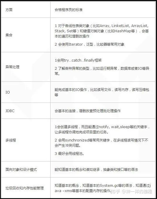 这些也是能找到工作的最低标准,Java Core的标准如下: