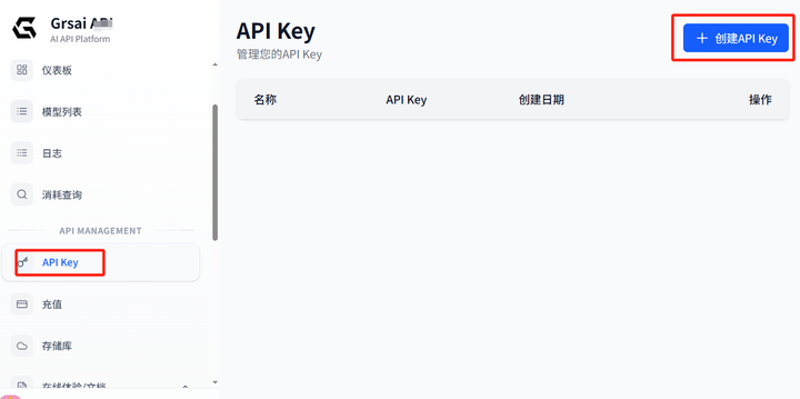 打开GrsAi官网:https://grsai.com/,进入控制台,创建一个Api Key。