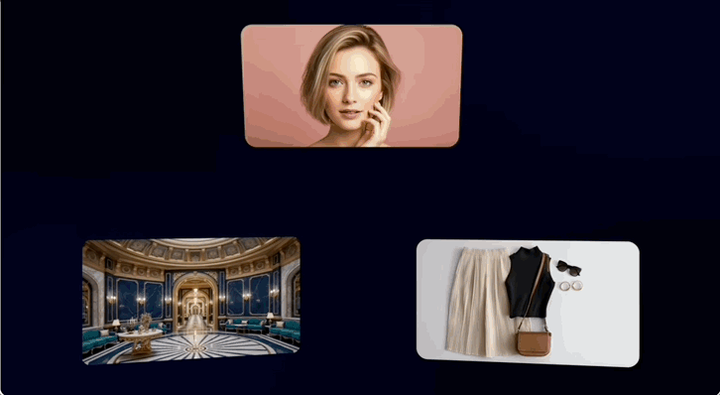 打造场景外观:通过“视频配料 (Ingredients to Video)”功能,用户可以上传多张参考图像来精确定义角色、物体和整体视觉风格,模型会利用这些“配料”生成一个与用户设想完全一致的最终场景。