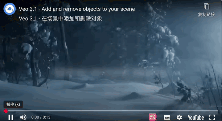 Veo 3.1的精细编辑:Veo 3.1在编辑控制上非常突出。它支持通过多张参考图像来精准定义输出内容的视觉风格。“首尾帧图”可以实现不同场景间的自然过渡,而“场景延伸”功能则可以智能地延续原有视频的动作与逻辑,突破单次生成的时长限制,在Flow中还能对内容进行插入、删除和重新构想