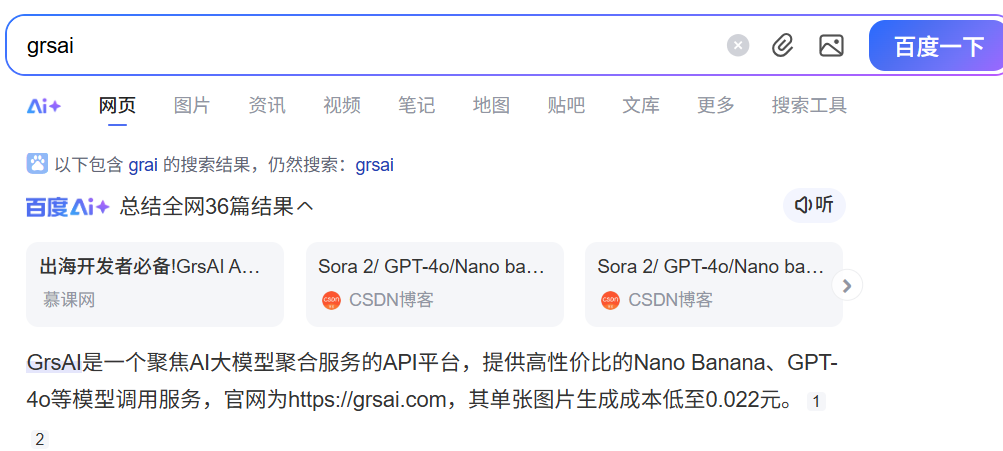 精准触达:当开发者在百度搜索相关问题时,我的文章成为了他们的“答案”,并自然地将高意向流量引导至GrsAi API平台。