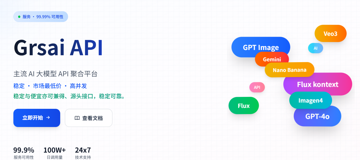 源头服务,低价稳定:市场上很多API服务是中间商,价格偏高且稳定性一般。而GrsAi作为源头供应商,我自己搭建和维护整个服务器集群,砍掉了所有中间成本,将价格压到最低(才能吸引用户)这让我们能提供极具竞争力的价格和远超同行的稳定性。“便宜又稳定” 是我们收到最多的用户评价。