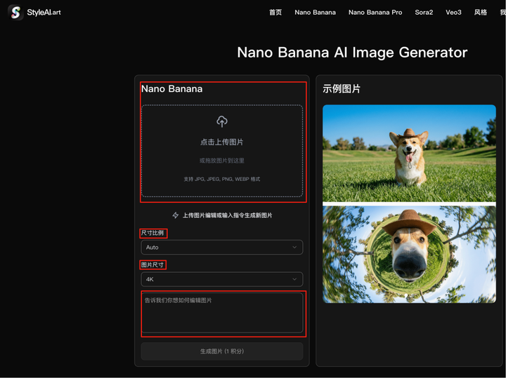 1.访问网站:打开https://styleai.art/zh/nano-banana-pro