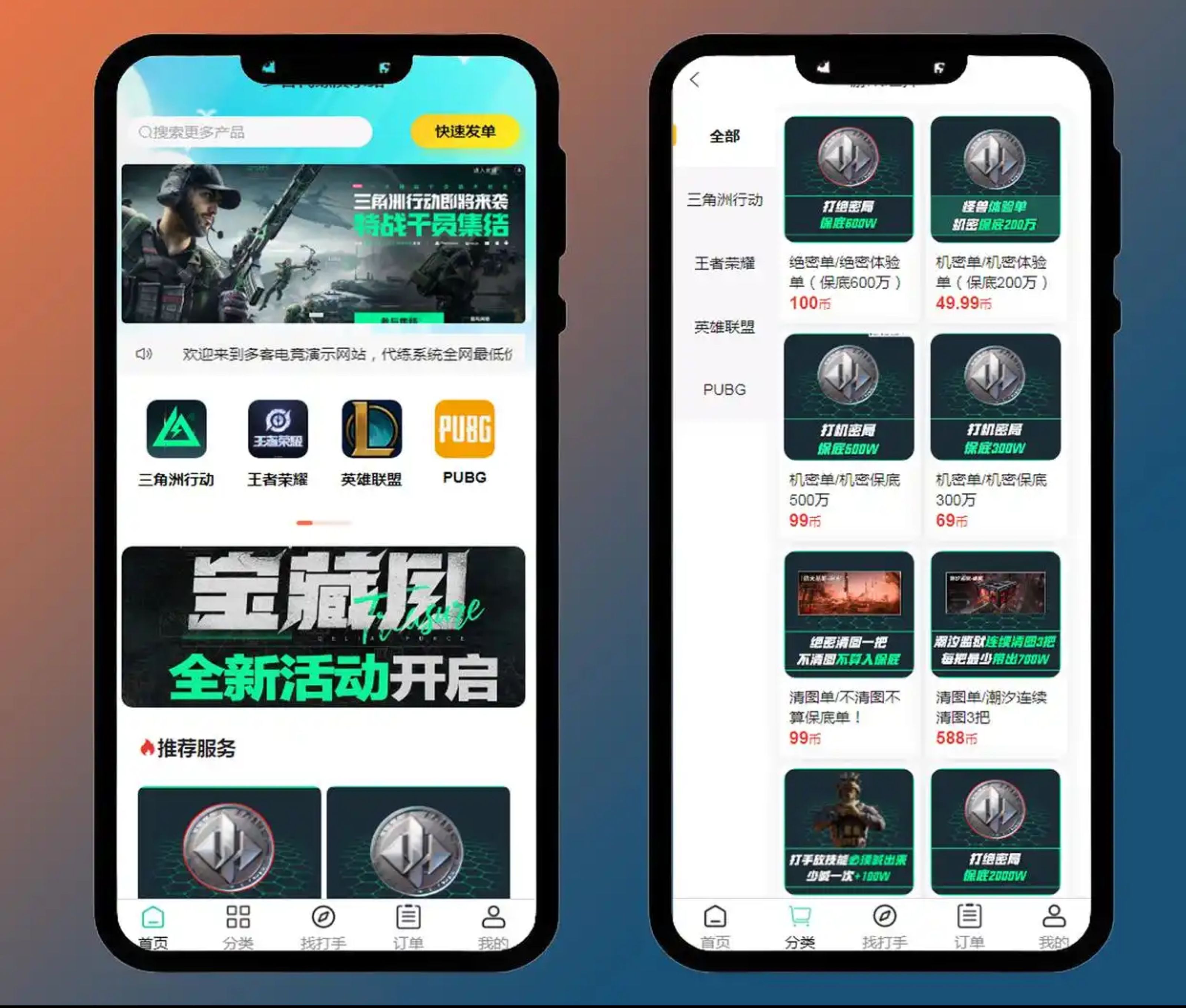 - 自定义不同游戏的代练项目(排位升级、装备收集、任务完成等)