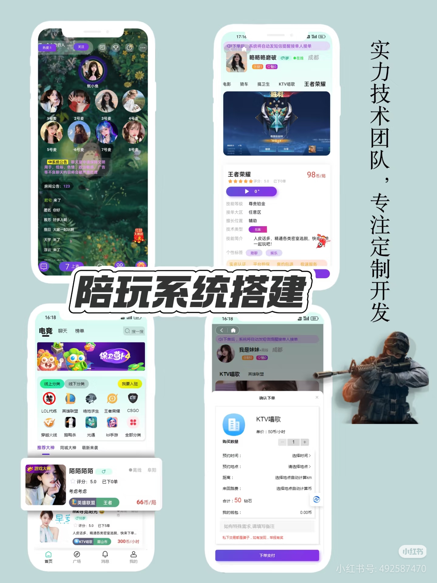全流程测试:模拟用户操作(注册→登录→选择陪玩师→创建订单→支付→陪玩师接单→服务中→完成服务→评价),排查各环节是否正常,无报错。