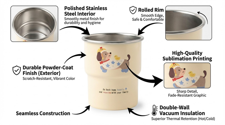 Based on the product in the reference image, generate a core selling point module image for an Amazon A+ page. A concise and powerful main title highlighting the product's core selling points is centered at the top. A full, high-resolution, upright image of the product's front is placed in the center, without cropping, featuring natural, soft lighting and textural reflections. Surrounding this are 3-5 small, exquisite rectangular or rounded corner selling point cards. These cards are compact, understated, and have extremely thin or no borders. Each card contains minimalist icons paired with a minimalist, precise selling point title and a very short description, naturally generated by AI based on the product's materials, technology, and design characteristics. The brand's primary color is used for subtle emphasis. The overall layout is minimalist, clean, symmetrical, and modern, with a pure white background. The product is centered and occupies the largest portion of the page, with no overlapping cropping or unnecessary decorations. High-resolution professional e-commerce design ensures natural and realistic lighting, and the card content precisely focuses on core technological advantages.
