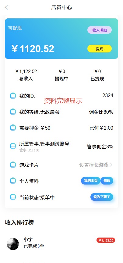代练师/护航员填写擅长游戏、段位、胜率、服务类型、单价