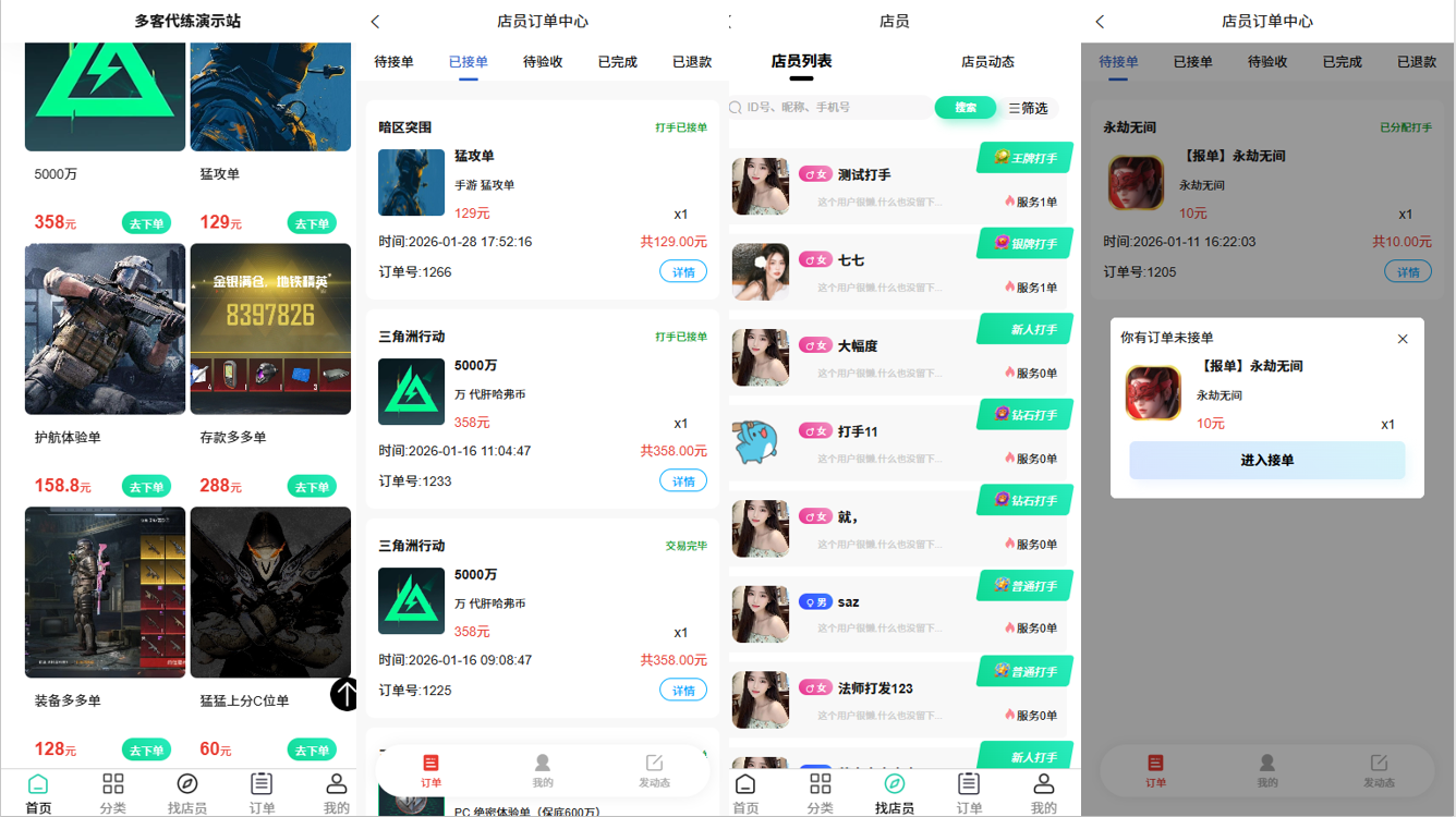 一、代练公司、工会、工作室:您可以使用在你的行业领域,快速建立私域客户并实现下单、打手管理变现能力。