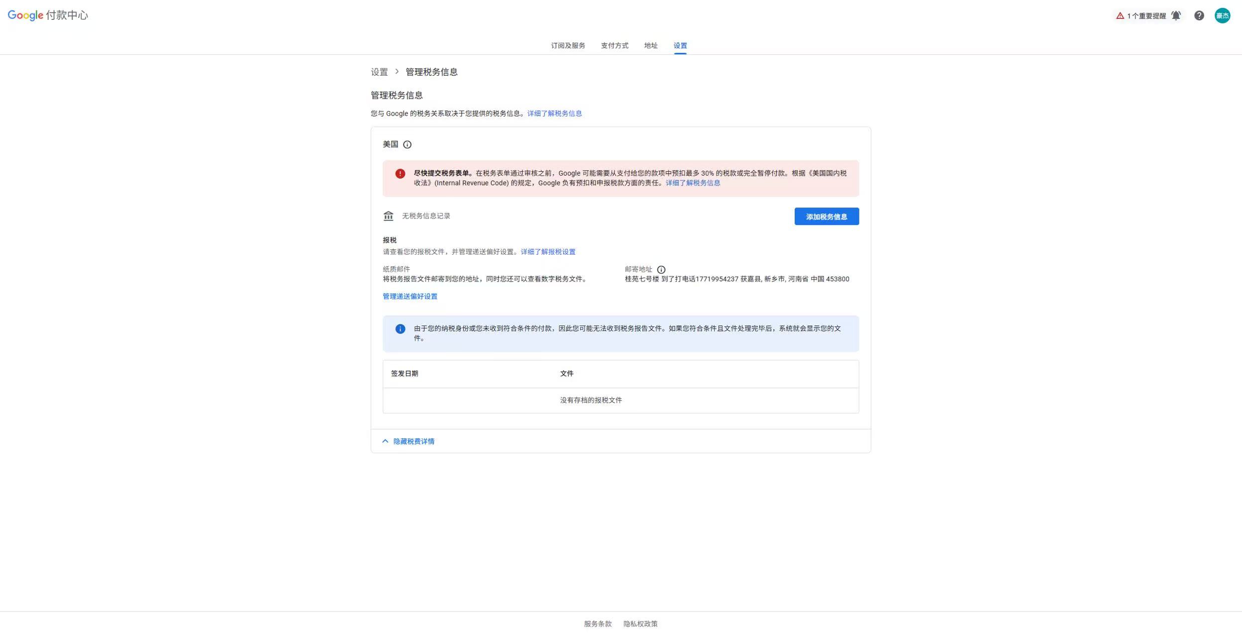 adsense admob创作者在有产生收益以后美金一直都没有汇出的情况,账户后台也没有其他的提示,那就得看看是不是税务信息没有填写,没有填写税务信息google也会暂停放款。