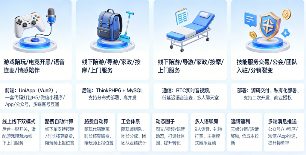 在Z世代追求"即时社交+场景体验"的今天,这款系统已帮助30+团队在电竞陪玩、桌游组局等领域实现月流水破10万。现在入手立享早鸟优惠,让技术不再是创业门槛!👉立即咨询获取完整功能清单与演示环境。